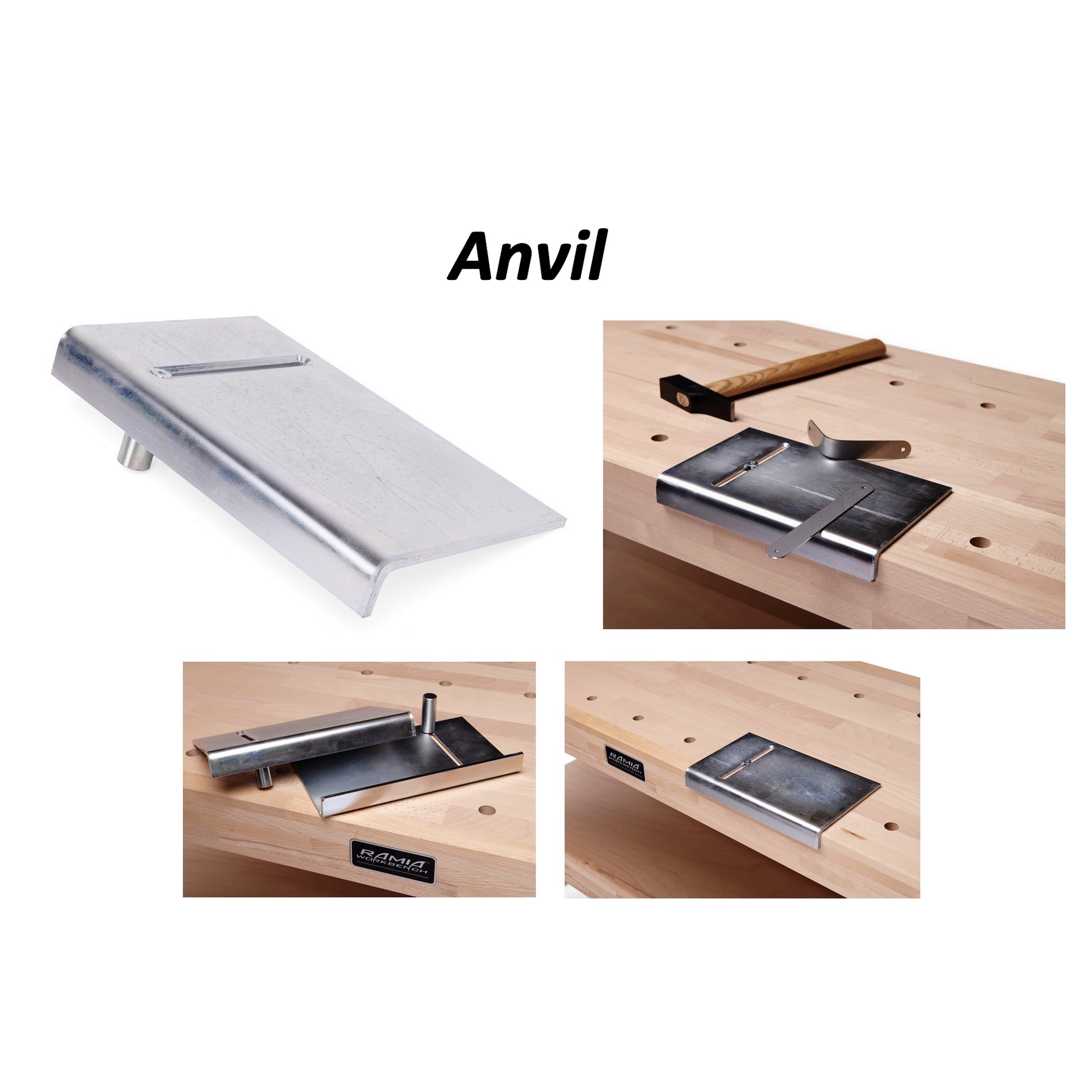 The RAMIA PROFI Accessory Kit is great set of items which increase utility value of every workbench. You will find a handy steel anvil plate with integral bench dog lets you use the bench for pounding metal without damaging the benchtop., rubberized cork strips to protect delicate or scratch-prone workpieces from the vise jaws, aluminum vise face protectors to cover their wooden contact surfaces when clamping harder-than-wood items that could leave dents and two adjustable holdfast clamps make it easy to secure workpieces using 3/4'' bench dog holes instead of the vises.